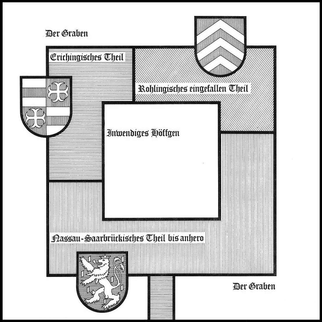 1638 schrieb der damalige evangelische Pfarrer von Saarwellingen Peter Schnetter, der nach Metz geflohen war: „Das Haus oder Schloss (in Saarwellingen) hatte, als ich dort ankam (im Jahre 1600), noch eine aufziehbare Brücke mit einem tiefen Graben, und wurde von altersher „Festung Wellingen“ genannt. Der Graben ist jetzt (im Jahre 1638) mit Calmus (Unkraut) zugewachsen, so dass kein Wasser mehr da ist. Im unteren Stock des Schlosses gab es einen Ziehbrunnen“. Im Jahre 1659 war die Burg völlig zerstört.