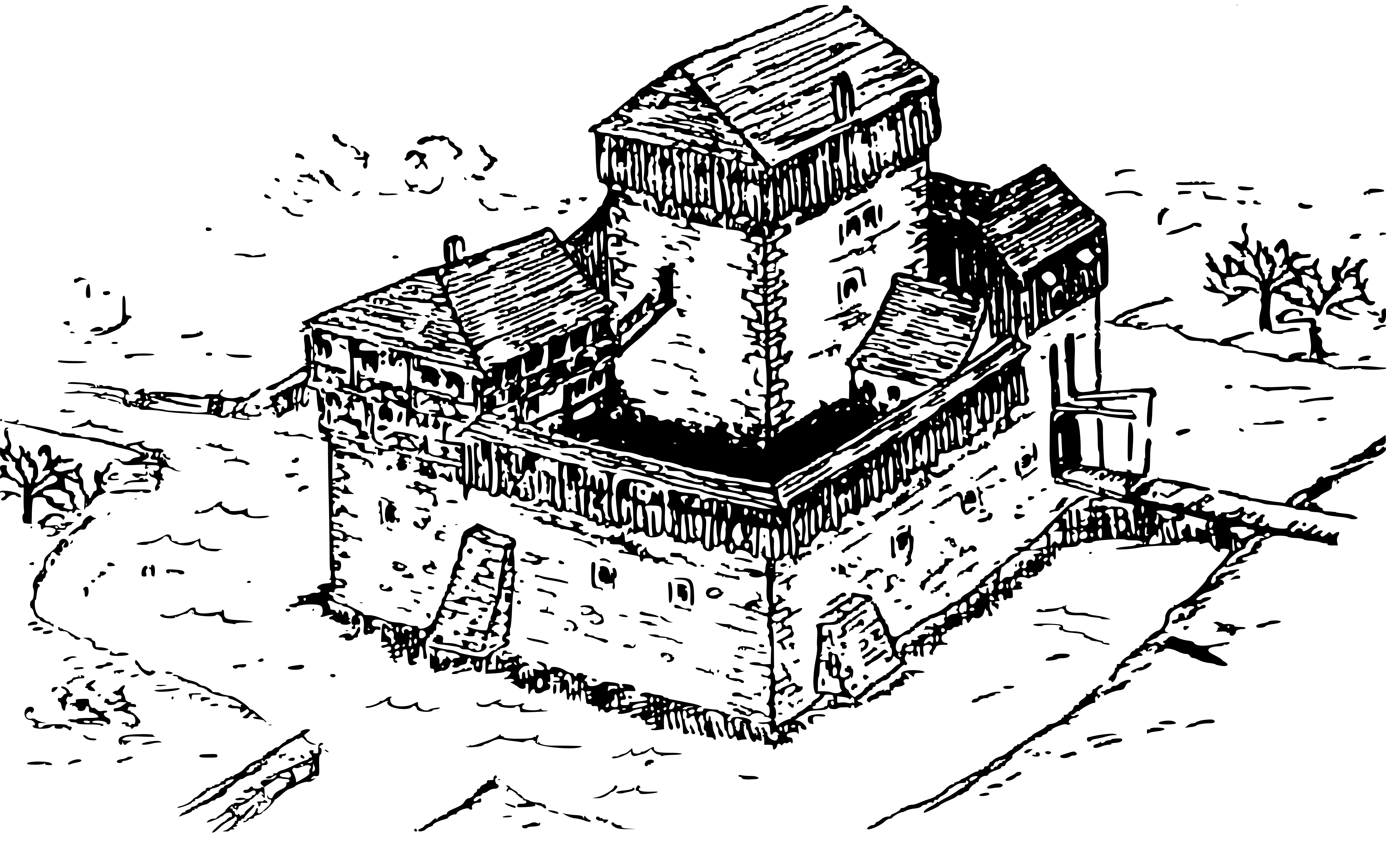Bau gewesen sein, der von einem Wassergraben umschlossen war.