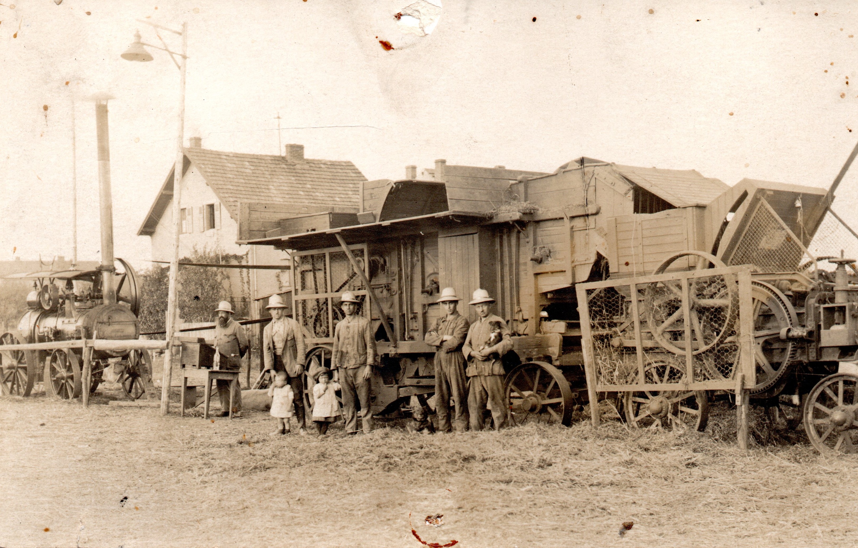 1931 stellte Wilhelm STEUER (1897-1983) den Antrag auf Errichtung eines Maschinenschuppens für eine Dreschmaschine. Ende des Zweiten Weltkrieges wurde der Dreschmaschinenschuppen zu 55% schwer beschädigt und wieder instandgesetzt. 1959 wurde die Halle erweitert und ein Kunstbetrieb eingerichtet.